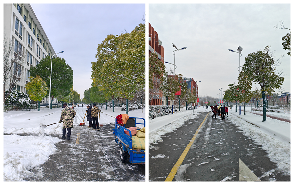 雪漫校园显温情,同心聚力护平安。这场极端降雪天气,既展现了冬日校园的银装美景,也考验了后勤的应急保障能力。后勤人员以雪为令、迎寒而上,用忙碌的身影筑起了冬日校园里最温暖的防线,让师生在严寒中感受到了实实在在的安全感与幸福感。