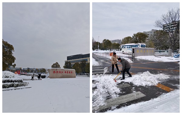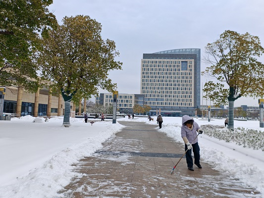 雪落无声,校园换颜。2026年1月中旬,受强冷空气持续影响,徐州遭遇入冬以来最强降雪天气。漫天飞雪为校园披上银装,勾勒出冬日限定的诗意画卷,却也给师生出行和校园运转带来严峻挑战。后勤管理处物业服务中心以雪为令、闻雪而动,迅速启动应急响应,全员上阵开展扫雪除冰工作,用责任与汗水筑牢校园安全防线。